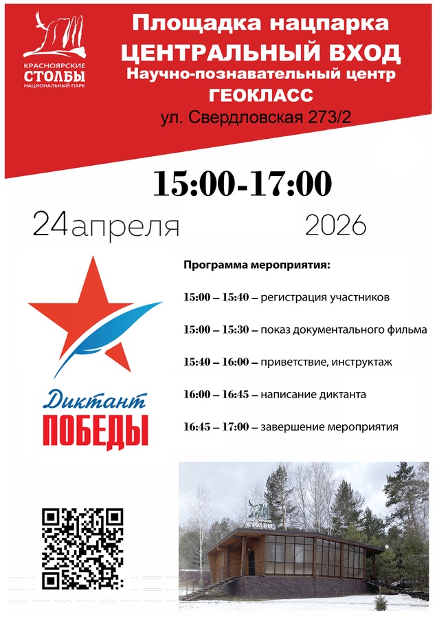 Международная историческая акция пройдет 24 апреля в Геоклассе – эколого-познавательном центре национального парка по адресу: г. Красноярск, ул. Свердловская, 273/2.