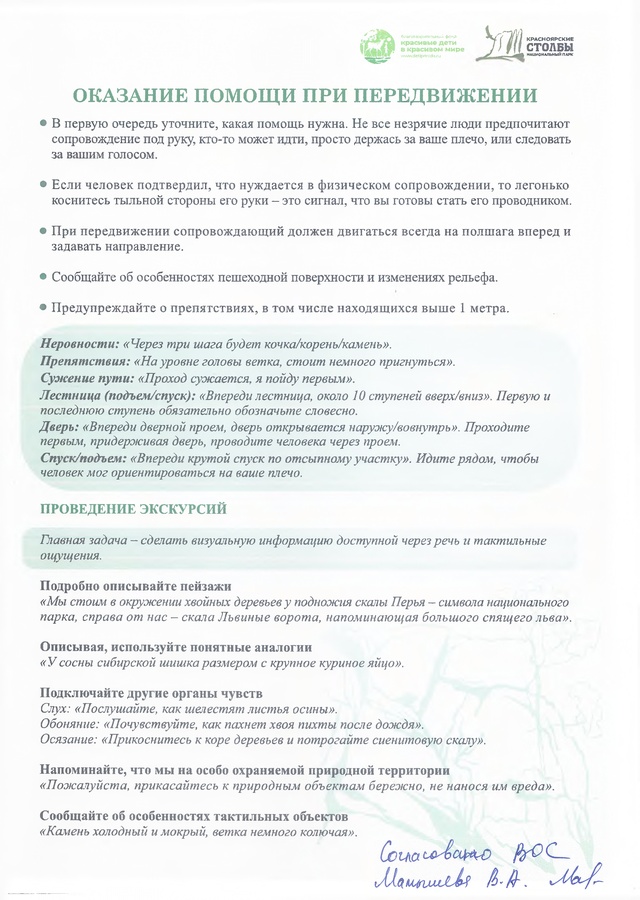 Сотрудники отдела экологического просвещения национального парка «Красноярские Столбы» создали инклюзивный гид по работе с посетителями на ООПТ с особенностями зрения, в рамках проекта «Белая тропа. Новый взгляд», реализуемого при поддержке Благотворительного фонда «Красивые дети в красивом мире».