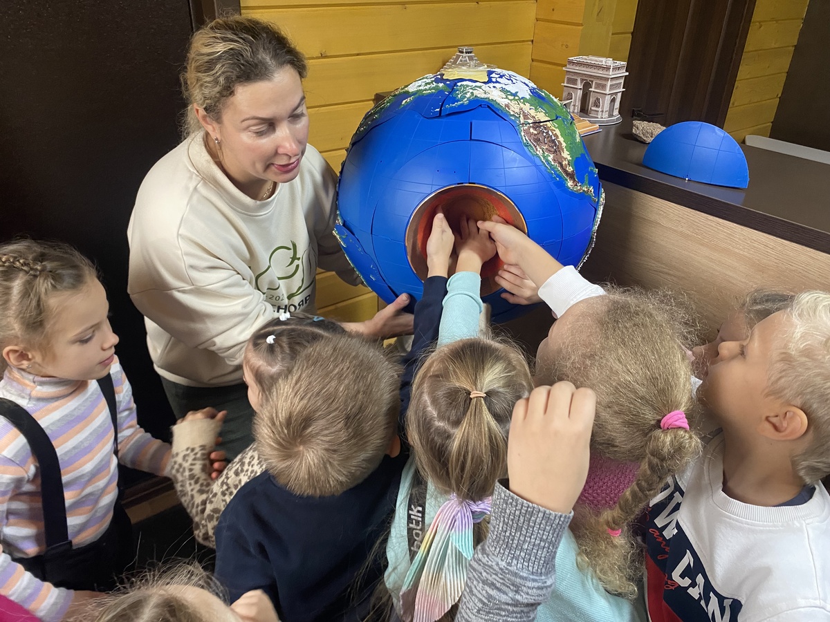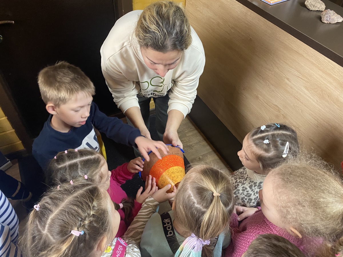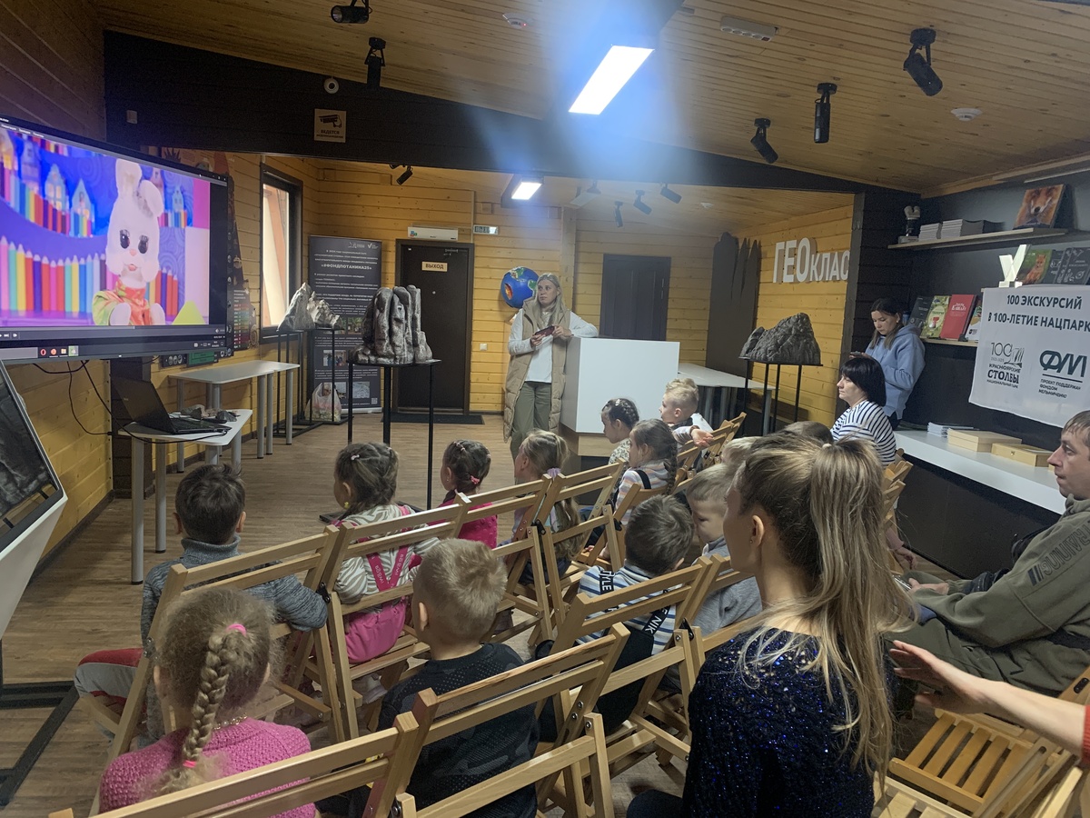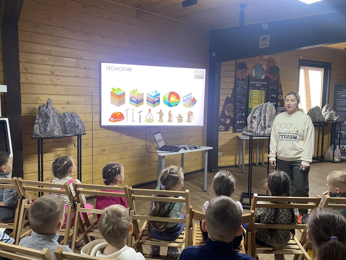 В пятницу, 3 октября, ребята подготовительной группы приехали в национальный парк еще в теплую осень. В Геоклассе дошколята познавали серьезную тему – «Геология. Подземный мир». Поговорили про пещеры, их устройство, натечные образования (сталактиты и сталагмиты), про обитателей и про исследователей. Рассмотрели макеты скал и коллекции горных пород, рассмотрели на глобусе строение нашей планеты. А после занятия прошлись с гидом до скалы Чертов палец, послушали легенды и исторические факты о скалах, реках, животных и растениях заповедной территории.