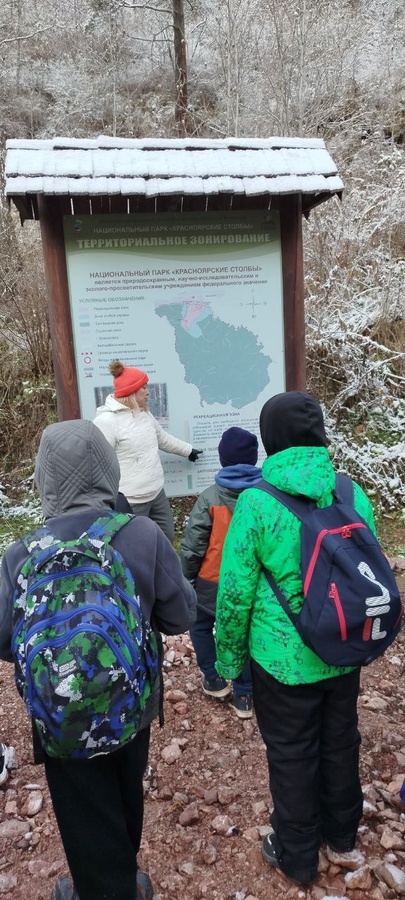 А 8 октября учащиеся 4 «З» класса приехали на Восточный вход. Прошлись по «Заповедной аллее» с общей экскурсией о вековой истории заповедника. На смотровых площадках послушали мифы и легенды, полюбовались скальным массивом Такмак. В научно-познавательном центре узнали о сотворении скал, видах растений и животных, а также следовой деятельности обитателей сибирской тайги. И в завершении приняли участие в квесте: следуя маршрутному листу, ребята нашли все «спрятавшиеся» следы зверей и птиц в «чаше» Гранитного карьера.