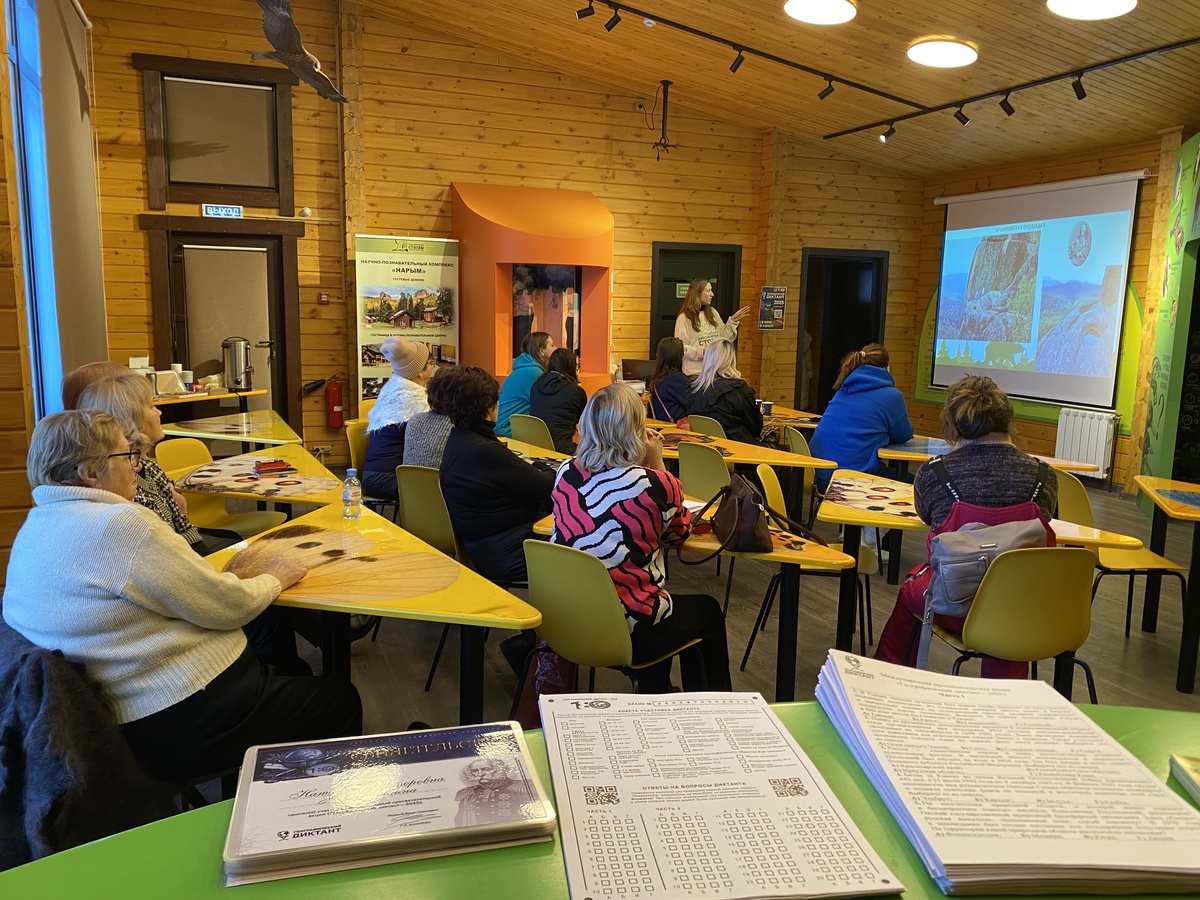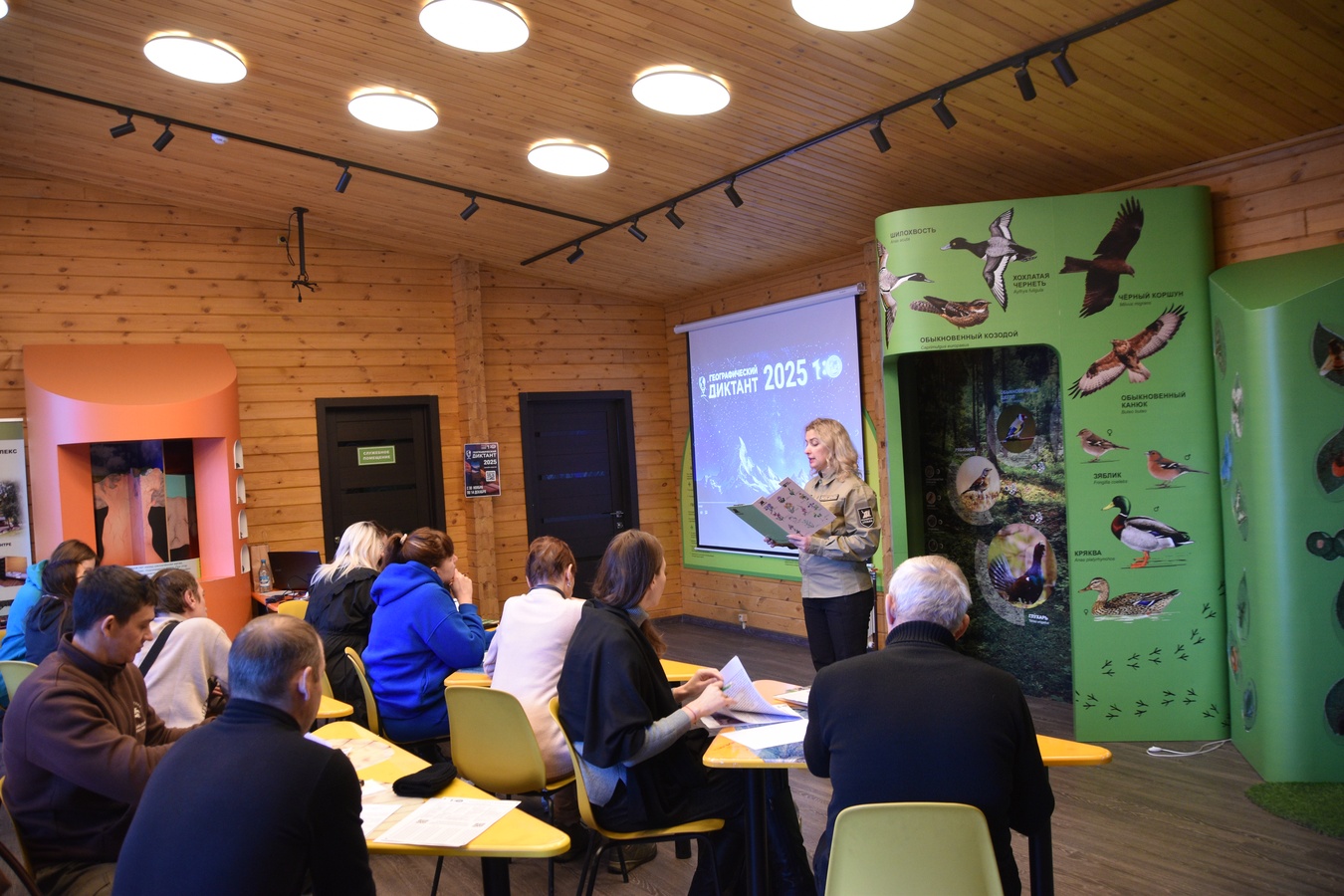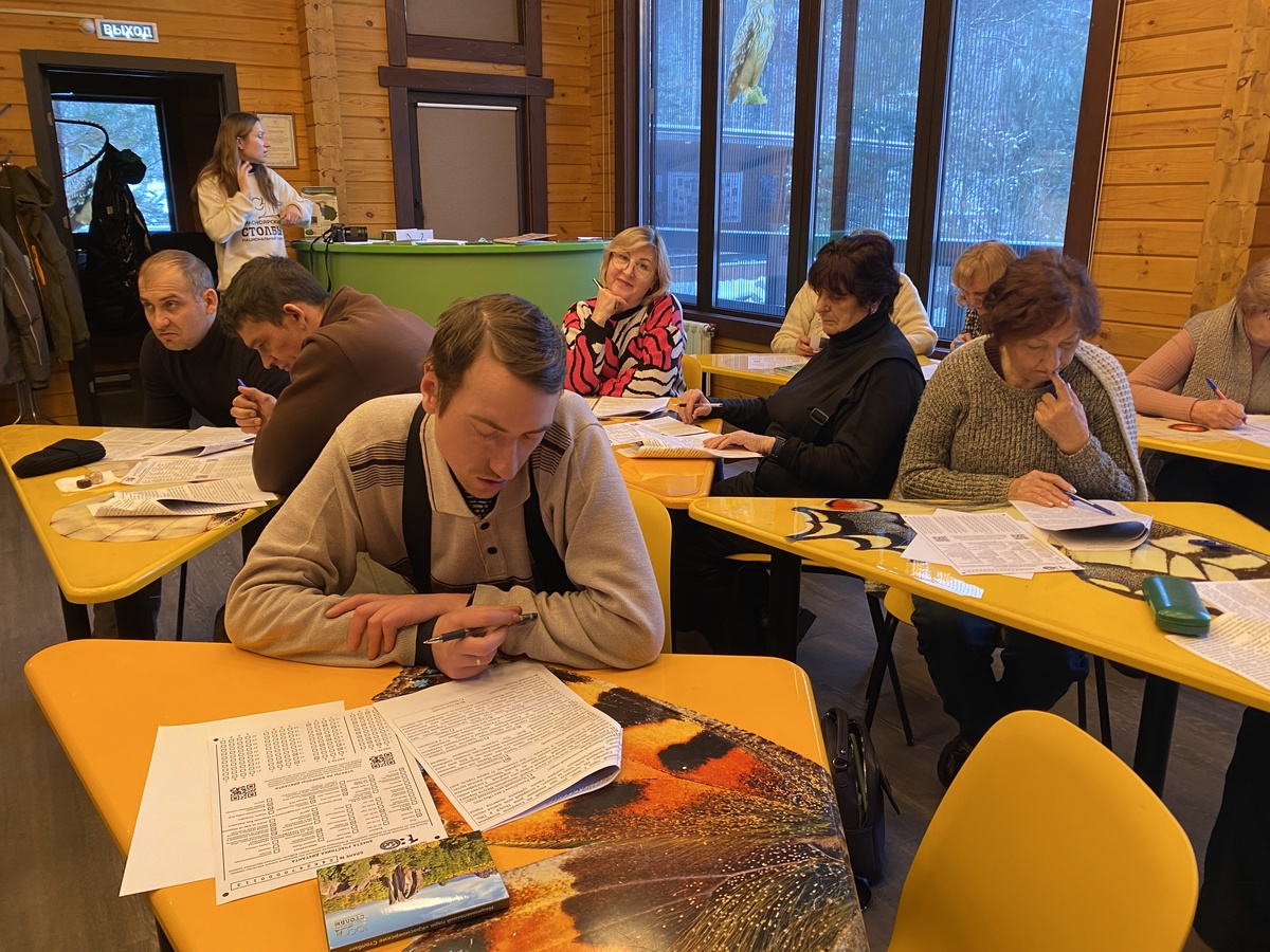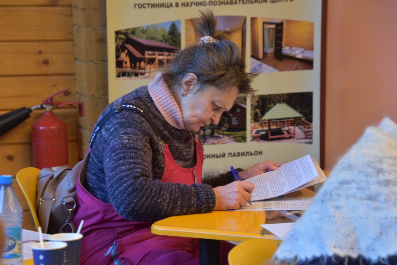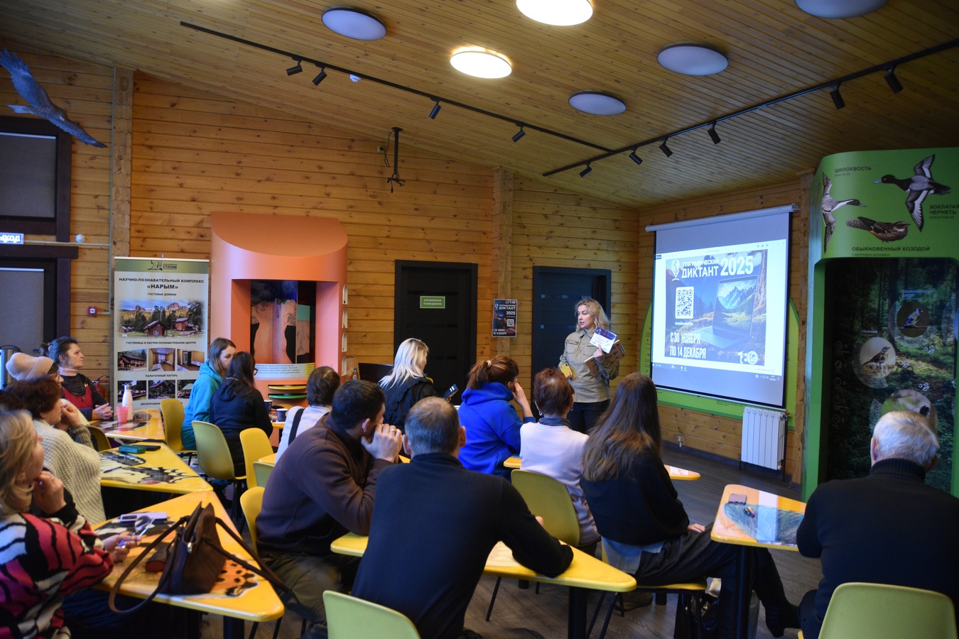 Объявленная до диктанта экскурсия по территории рекреационной зоны из-за сильного мороза была перенесена в помещение. Виртуальное путешествие по маршрутам нацпарка провела методист отдела экологического просвещения Надежда Гончарова. Она подробно рассказала о самых популярных скалах и ответила на многочисленные вопросы собравшихся.