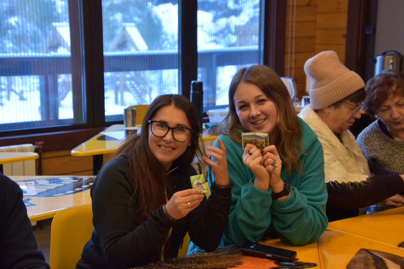 Дарья Белоусова и Галина Доценко: «Это наша любимая площадка для написания диктанта. Мы участвуем в 8 раз и всегда выбираем национальный парк, потому что здесь приветливые сотрудники, которые встречают своих гостей с улыбкой, горячим чаем и сувенирами. Помимо диктанта, были интереснейшие занятия от Надежды Васильевны: виртуальная экскурсия по «Красноярским Столбам» и историческая лекция, посвященная 100-летию учреждения. А Марина Сергеевна, как всегда, отлично провела диктант, а потом научила нас складывать оригами. Сделанные книжки-малышки с фотографиями скал мы унесли с собой на память о мероприятии. Спасибо за душевную атмосферу на площадке».