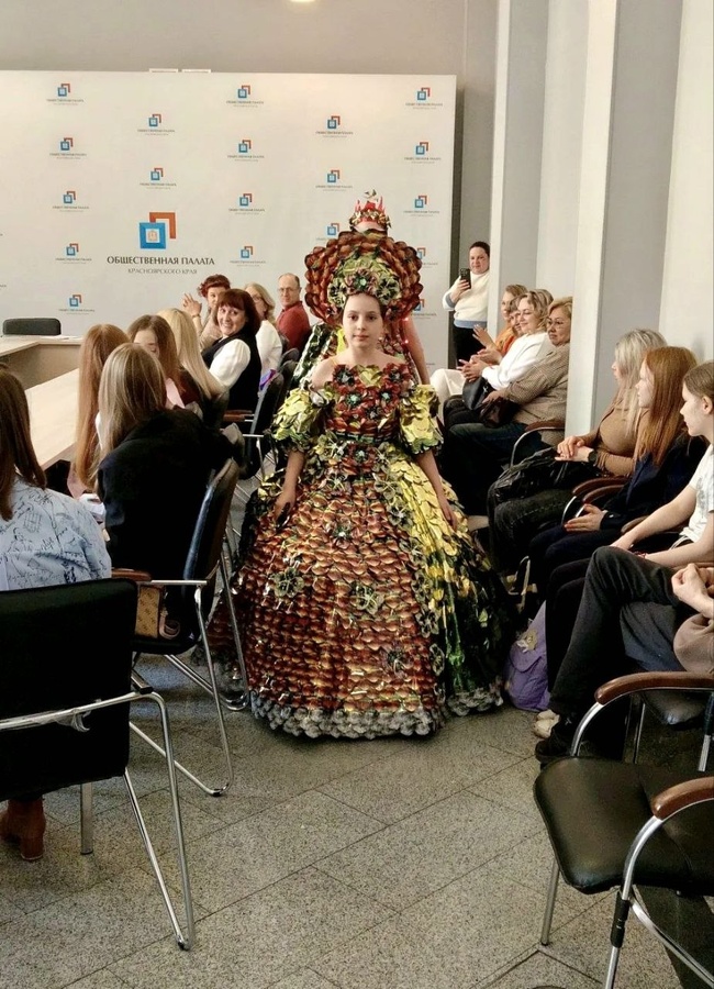 Яркой изюминкой встречи стала демонстрация нарядов, изготовленных из индивидуальных упаковок от чайных пакетиков, творческой студией «Старина по-новому». Руководитель студии Наталья Петрович рассказала собравшимся о том, что делались костюмы не только из эстетических соображений, но и в эколого-просветительских целях. Ведь фольгированная упаковка – уникальный материал. И коллективам детсадов и школ вполне по силам создавать такие костюмы для утренников. Это реальная возможность сократить попадание подобной упаковки на полигоны региона.