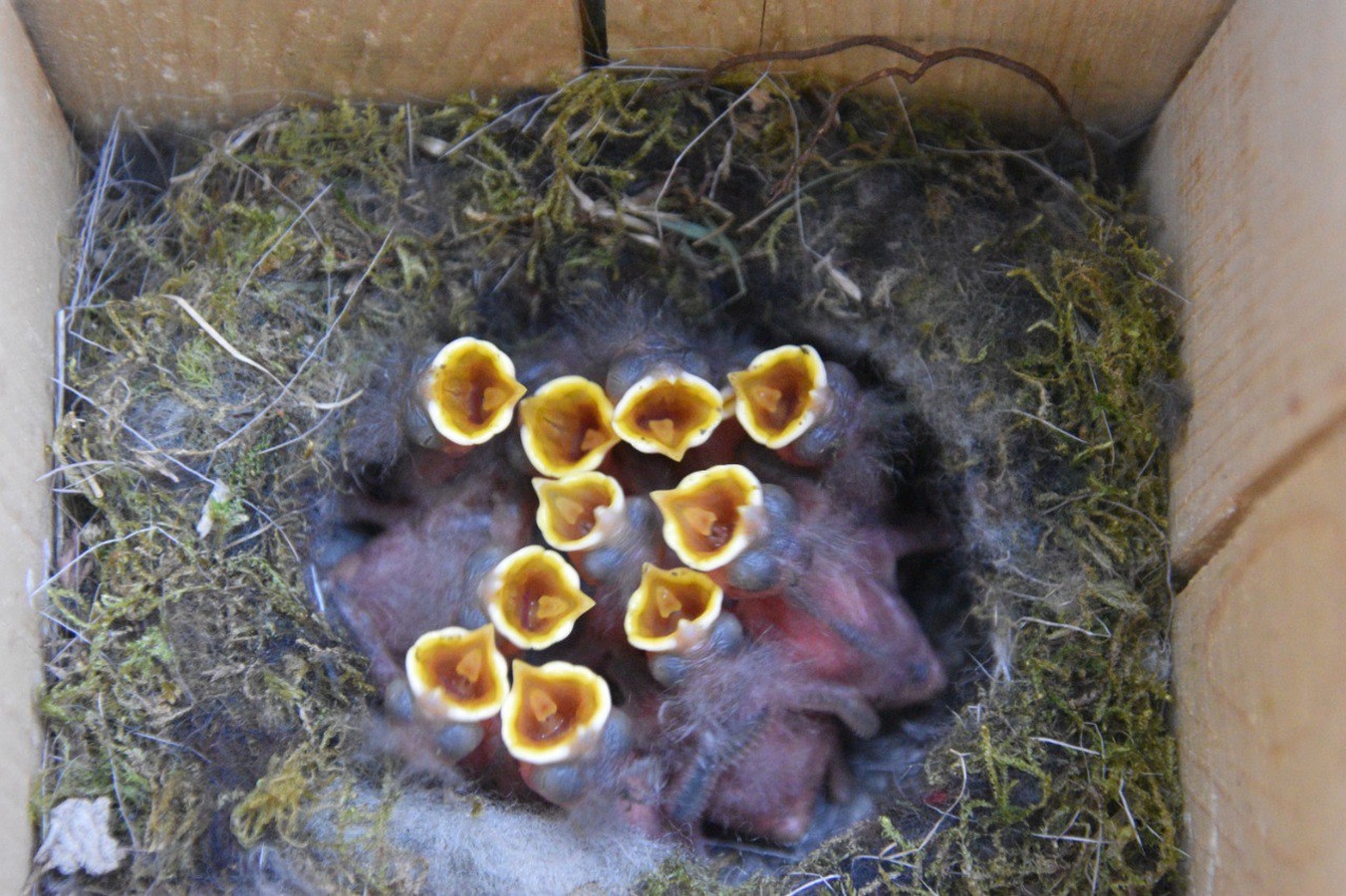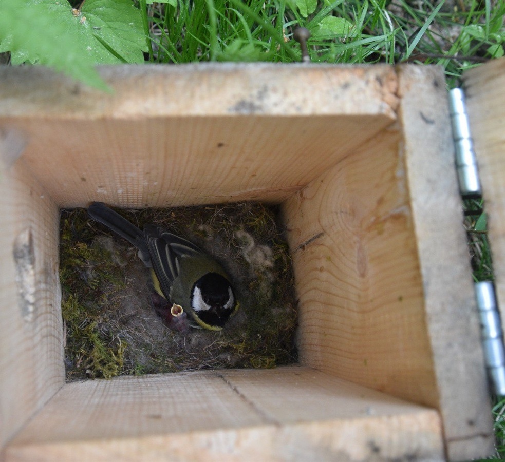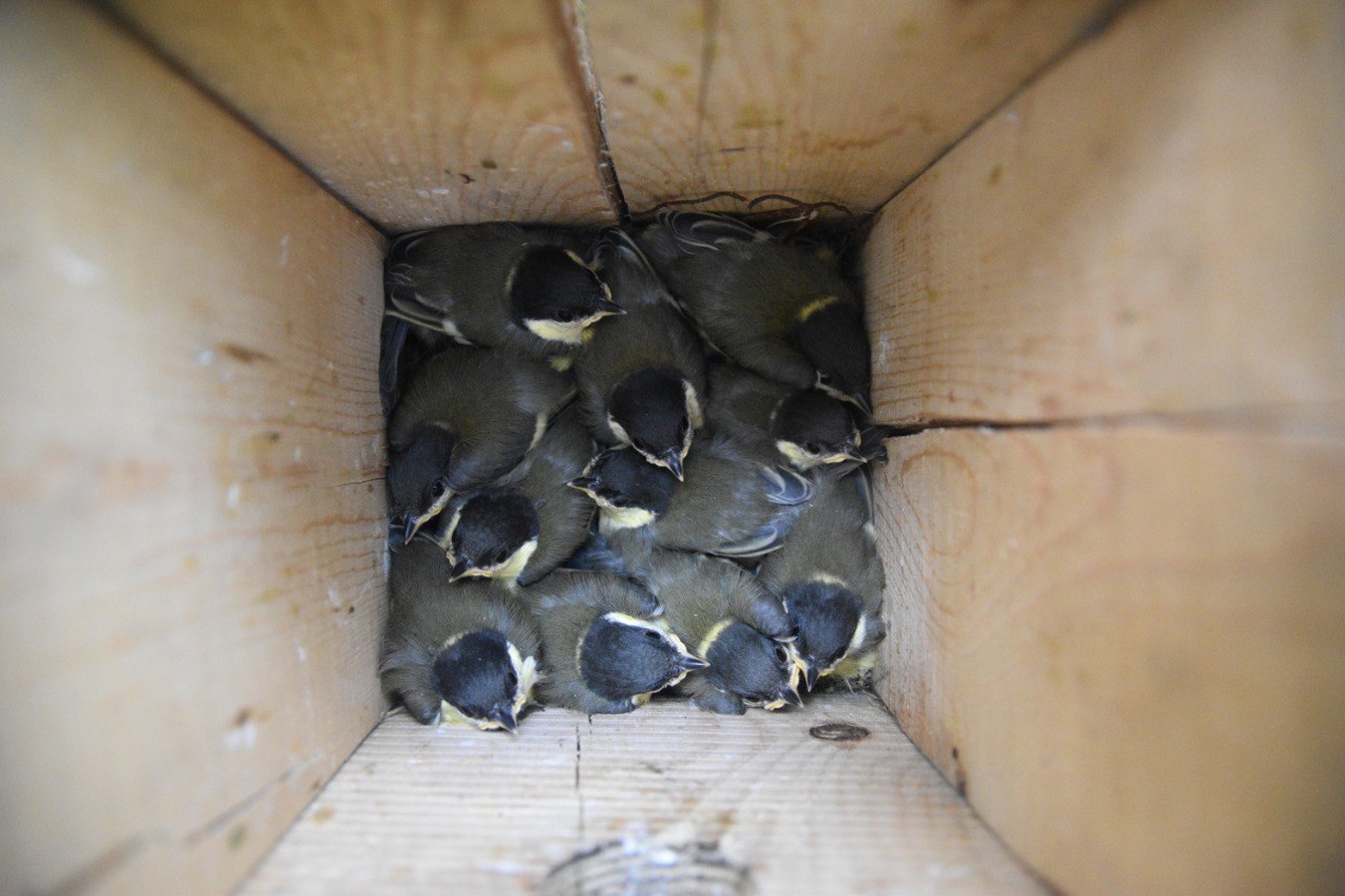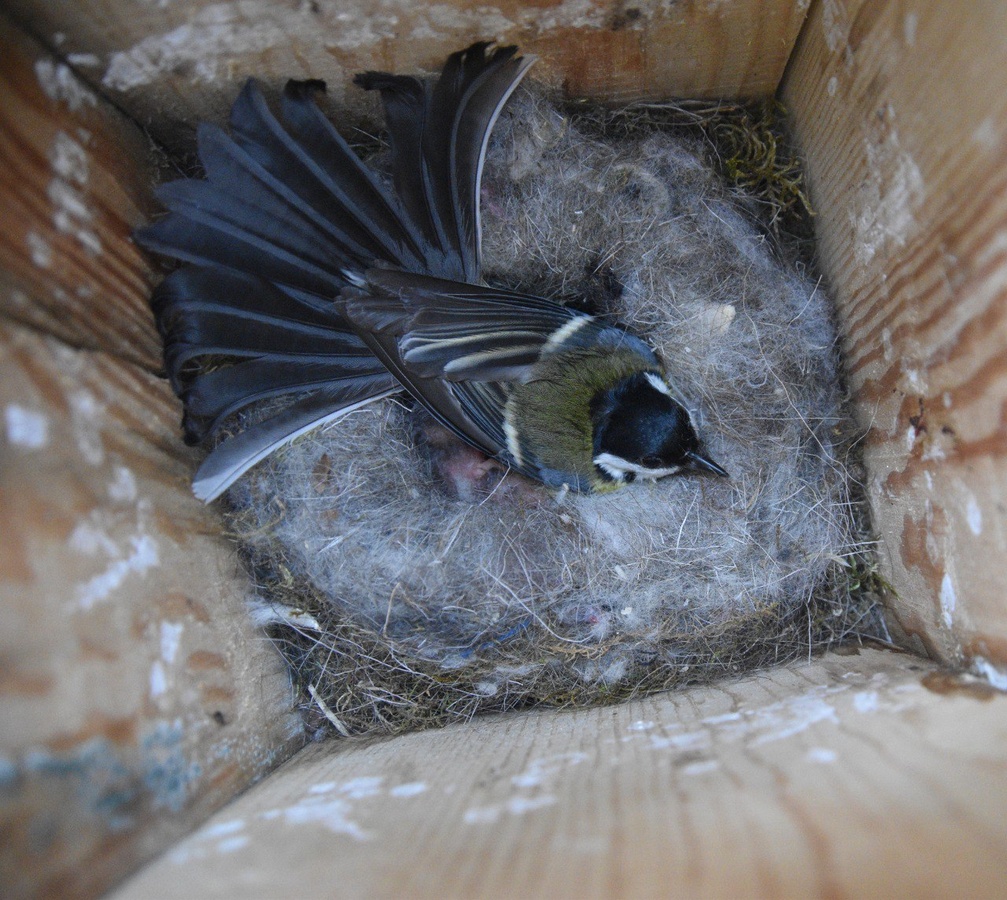Насиживает кладку только самка, очень плотно, самец ее кормит, либо она ненадолго слетает подкрепиться. Но по-настоящему «горячая» пора начинается с момента вылупления птенчиков. Для быстрого роста они должны есть, хоть и небольшими порциями, но весь световой день, а он в мае месяце длится 16-17 часов, все время увеличиваясь. Обычно птенцы сидят в гнезде две недели, но некоторые малыши увеличивают срок беззаботного детства до трех. Почему нет, если мама так добра и кормит досыта?! Меньше, чем через год выросшие синичата сами станут такими же заботливыми мамами!