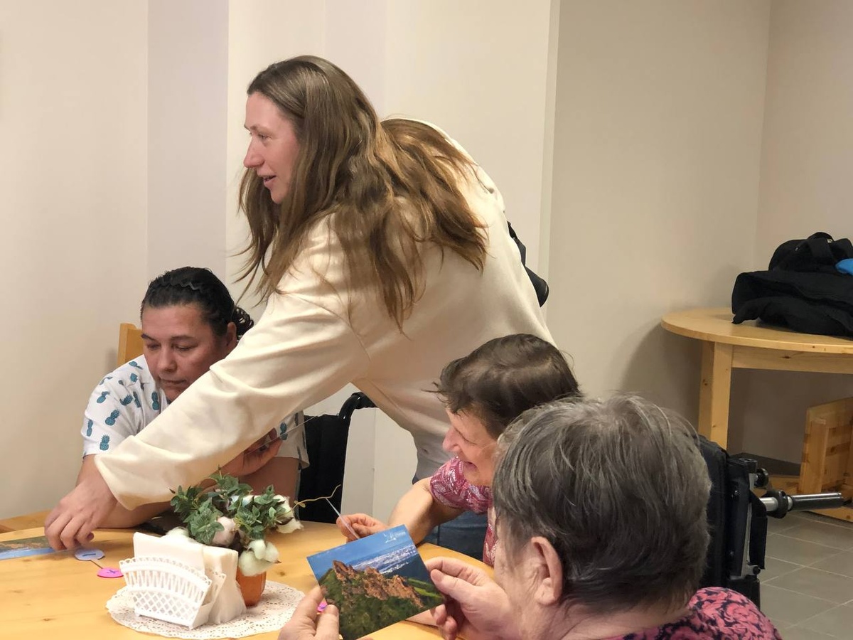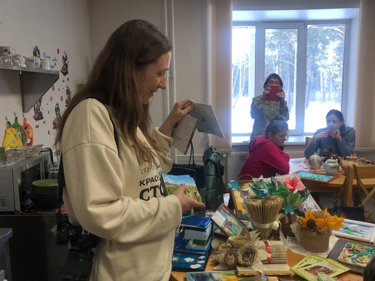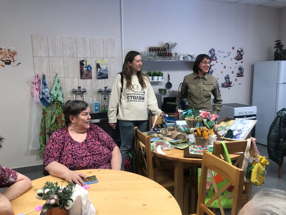 В честь Международного женского дня, методисты нацпарка Светлана и Надежда, вручили дамам, проживающим в Доме-интернате для граждан пожилого возраста и инвалидов, сувенирную продукцию с символикой «Красноярских Столбов», а также работы победителей межрегионального творческого конкурса «Первоцвет»-2026.