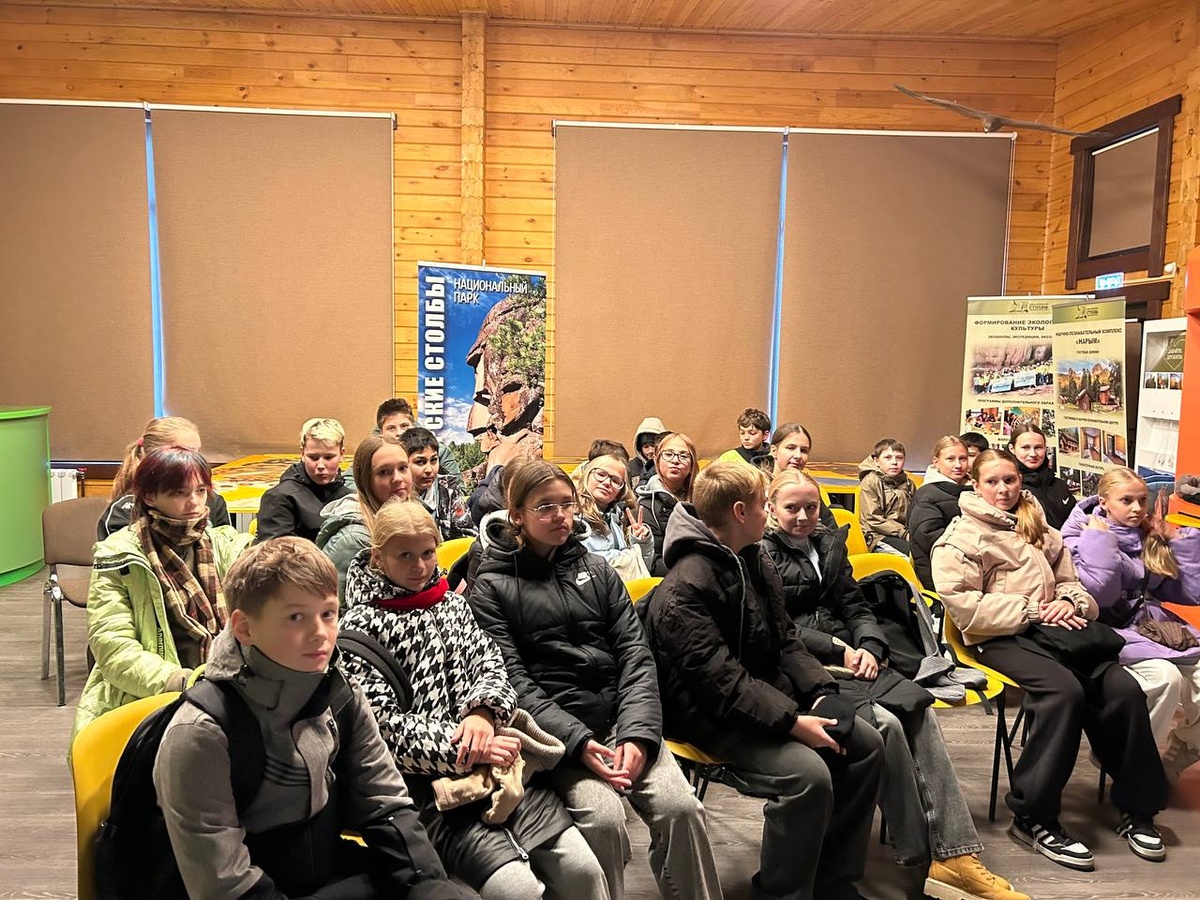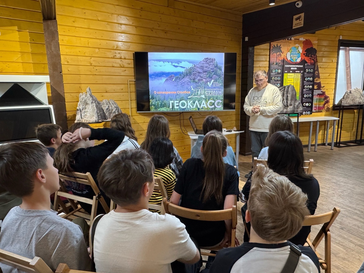 Группа из 23 учеников 6 «а» класса средней школы №34 имени Героя Советского Союза А.Л. Кожевникова приехала в Геокласс, где для них прошло занятие «О сотворении скал «Красноярских Столбов». Ребята познакомились с теорией образования скал, но и геологией как наукой, геологическими профессиями, видами горных пород и минералов. А затем прогулялись по экотропе и увидели Чертов палец – первую скалу, которая встречает туристов, спешащих в Центральный скальный район нацпарка.