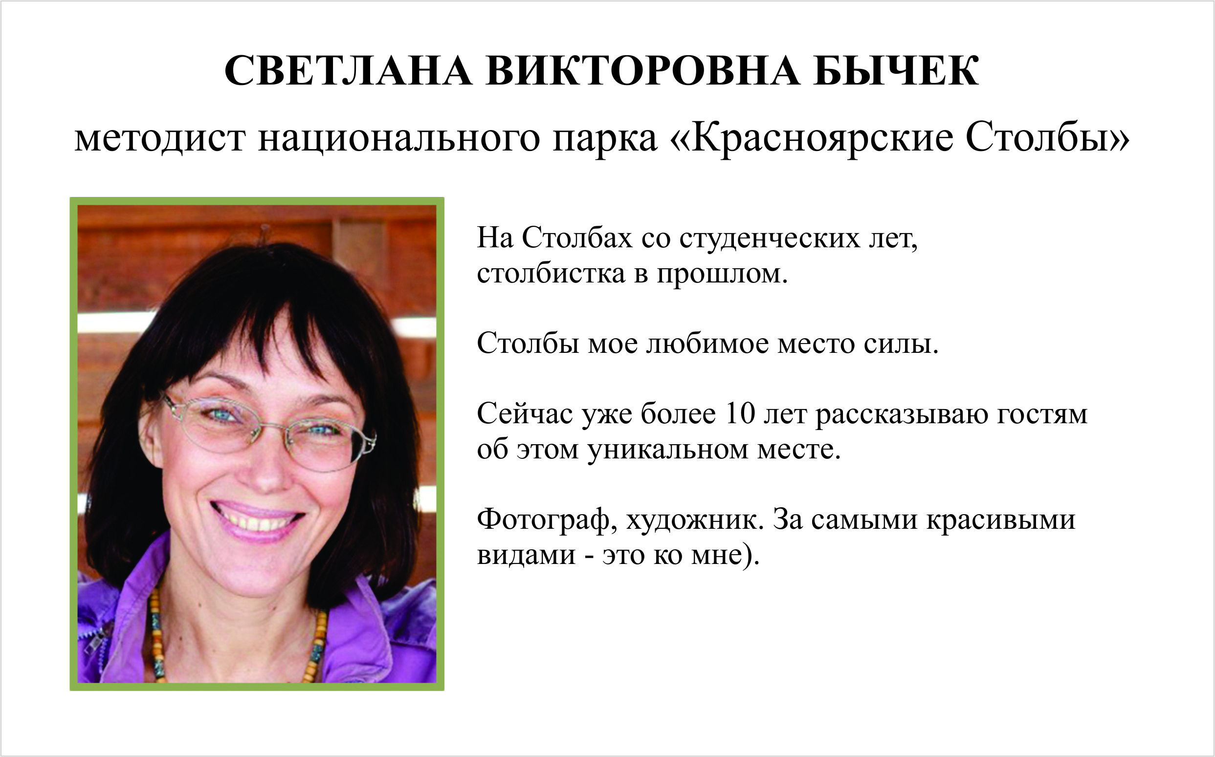 О себе: проводить экскурсии могу только в выходные дни, в субботу и воскресенье. Экскурсоведение по сути – мое хобби. Вожу по Центральным Столбам, по маршруту «Природа — великий скульптор»