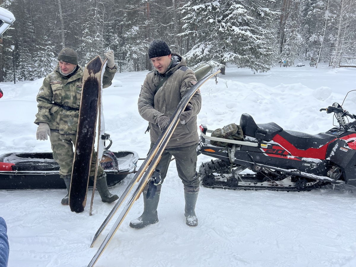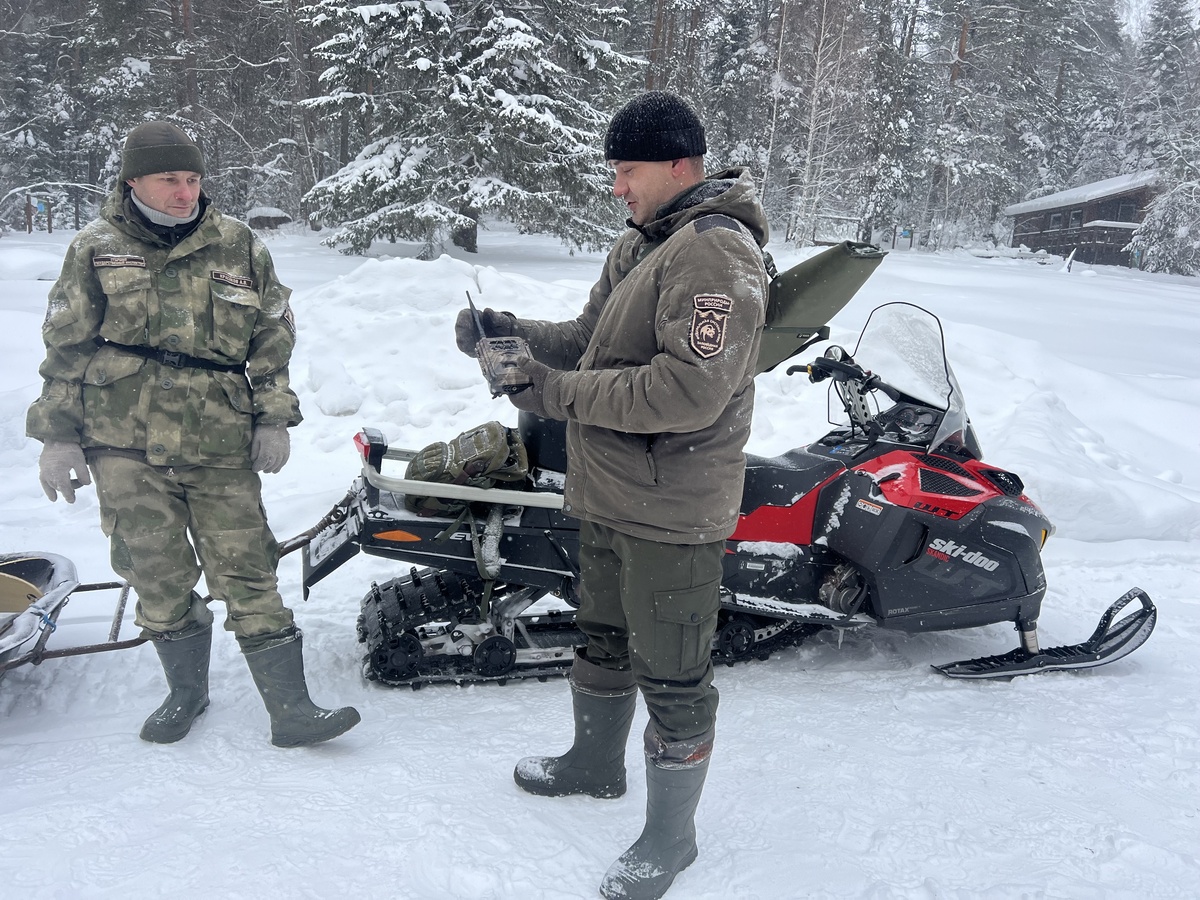 Госинспекторы готовились к полевому выходу на постоянный учетный маршрут для проведения охранно-режимных мероприятий. В планах этого дня у сотрудников была задача «пробить» на снегоходе дорогу и установить фотоловушку в заповедной зоне, там, где на звериной тропе встречаются дикие звери, в том числе и рысь.