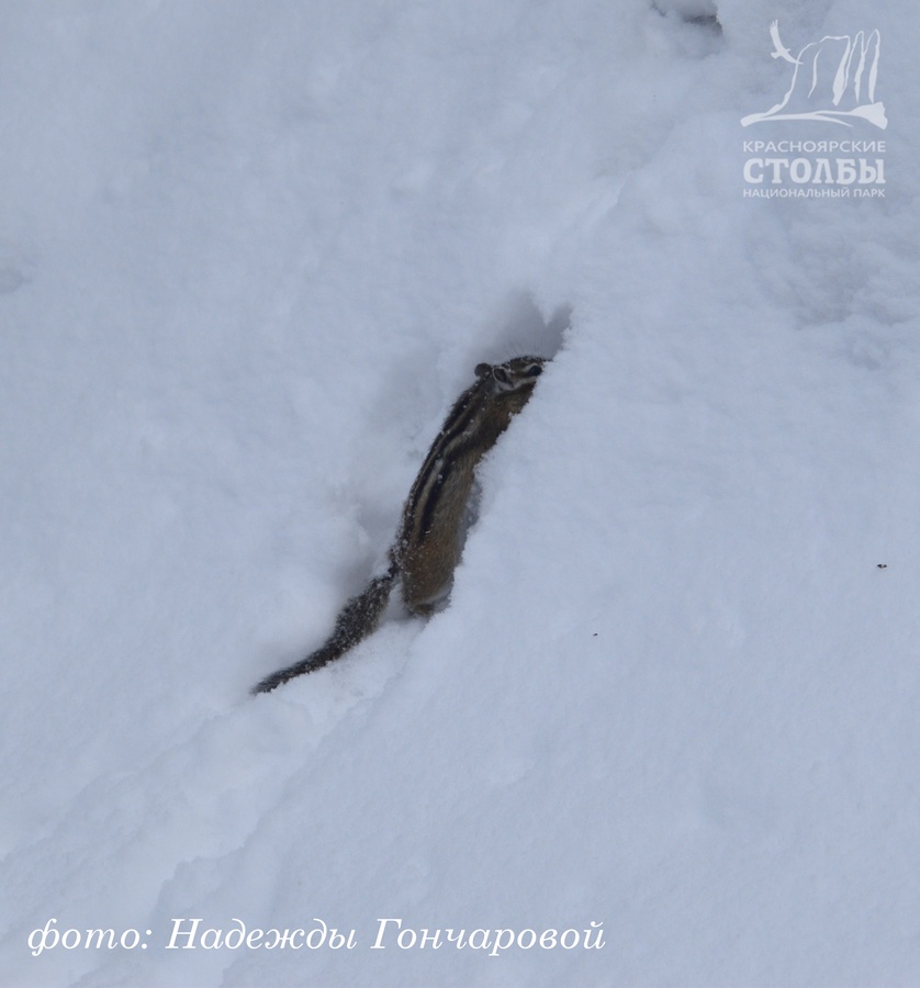 «Это шустрые полосатые зверьки с конца октября до начала апреля впадают в спячку. В годы обильного урожая семян кедра их можно встретить до первой декады ноября. Однако время от времени животные просыпаются, чтобы подкормиться своими запасами, заранее заготовленными в подземной «кладовой». К концу периода активного снеготаяния зверьки пробуждаются окончательно и выбираются из нор. Они лакомятся первой зеленью, пока ещё немногочисленной, поскольку им необходимо пополнить запас витаминов в организме. Помимо свежих зелёных побегов в это время года бурундуки кормятся почками древесных растений, семенами, насекомыми», — отмечает Надежда Гончарова, методист «Красноярских Столбов».