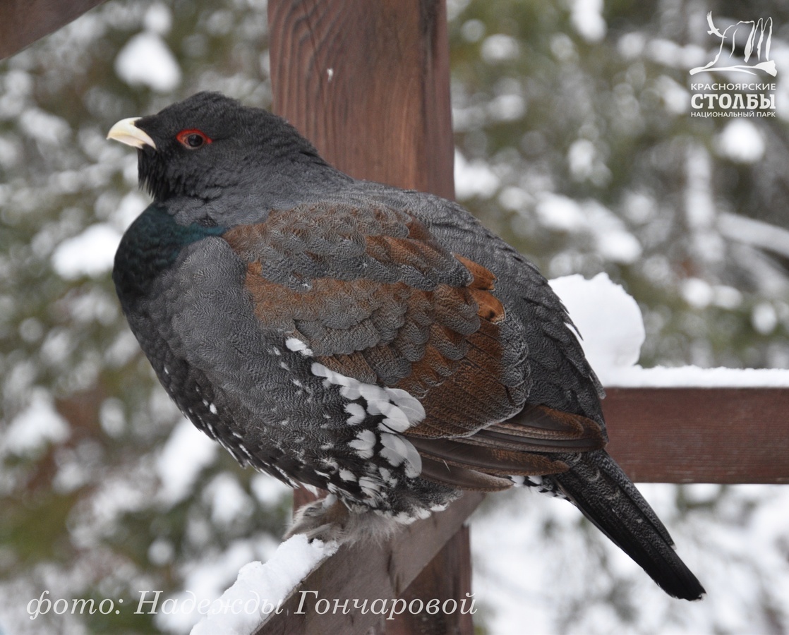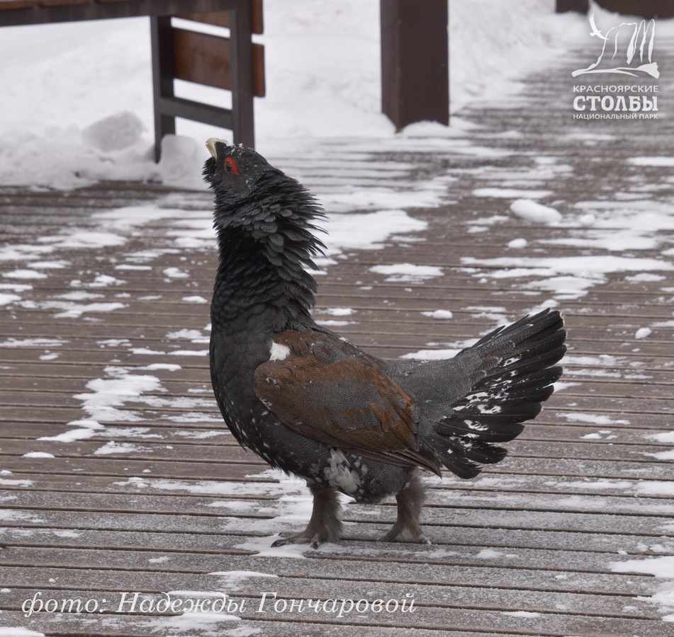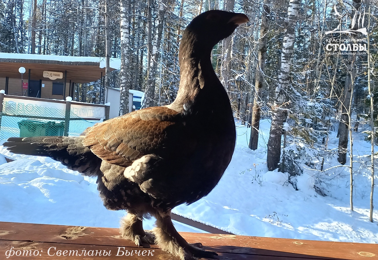 И если мы говорим о зимующих у нас птицах, то, конечно, не можем обойти вниманием глухаря, который в последнее время стал практически достопримечательностью «Красноярских Столбов».