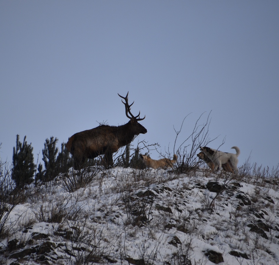 Сотрудник отдела экологического просвещения национального парка, гуляя на территории в первые дни наступившего года, стала свидетелем охоты стаи собак на маралов. В данном случае, благодаря противостоянию взрослых самцов копытных и отсутствию снежного наста, трагедии удалось избежать. Маралы отбились от псов. Но так бывает, увы, не всегда.