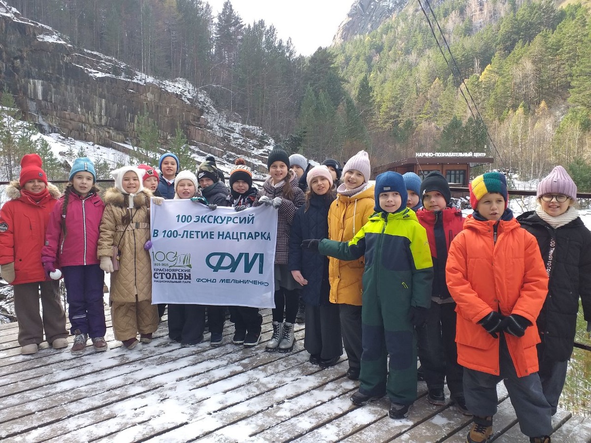А 17 октября на Восточном входе побывали ученики 7 «и» класса красноярской школы № 145. Экскурсия в Гранитном карьере для них была дополнена серьезной лекцией про 100-летие «Красноярских Столбов» и практическим занятием «Заповедный следопыт».