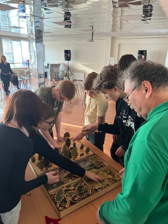 Во время практической части школьники научились пользоваться таксационнными приборами, инструментами лесных пожарных, в том числе ранцевым лесным опрыскивателем. А с помощью игрового обучающего комплекса «Лесные насаждения» создавали «лес» на игровом поле, узнали, какими бывают леса по породному составу и что такое формула лесного насаждения.