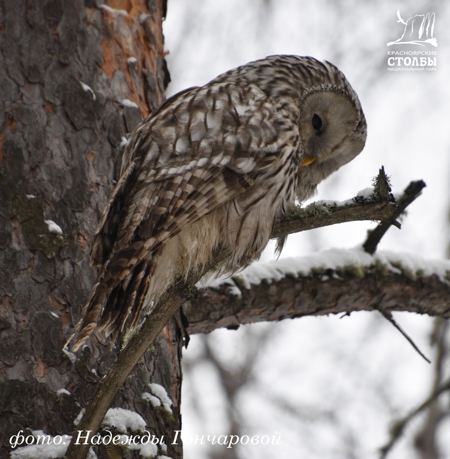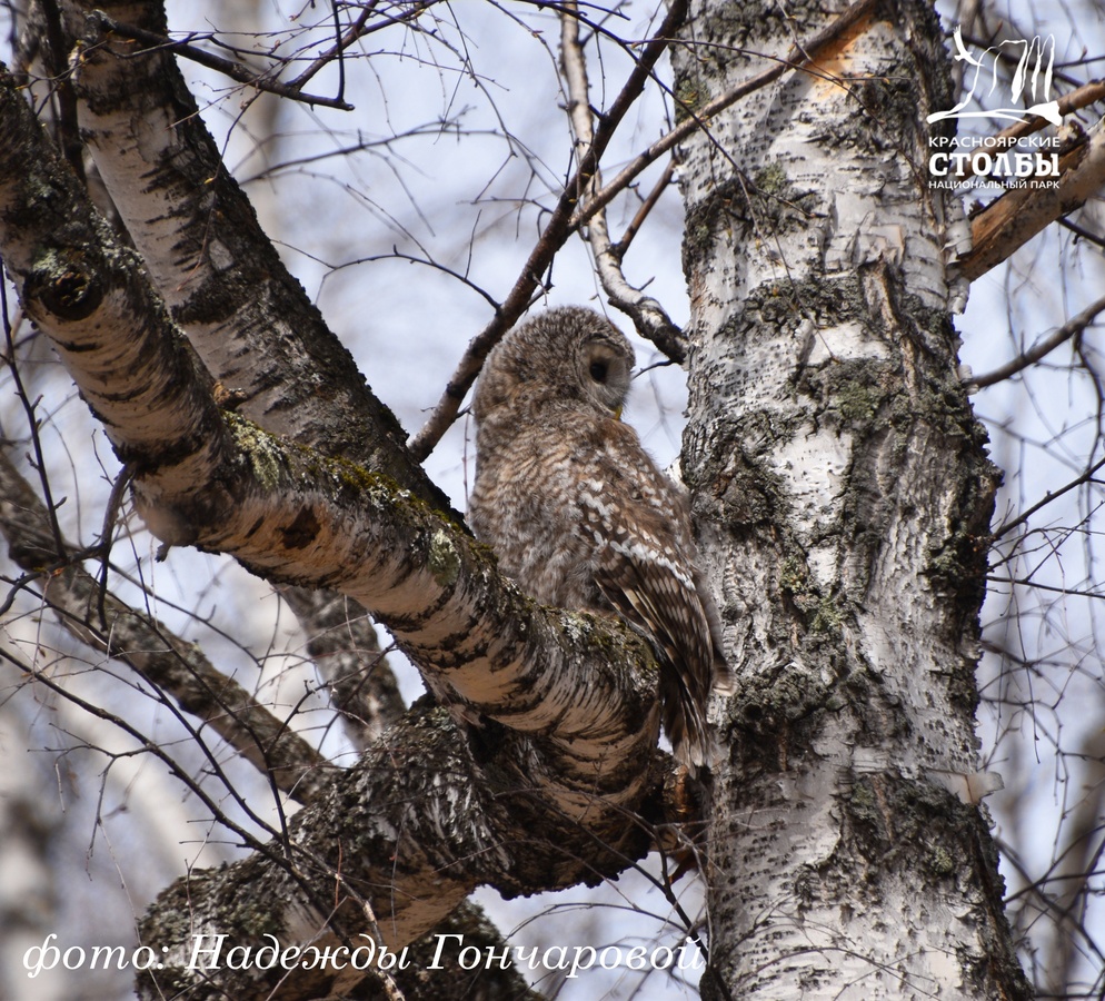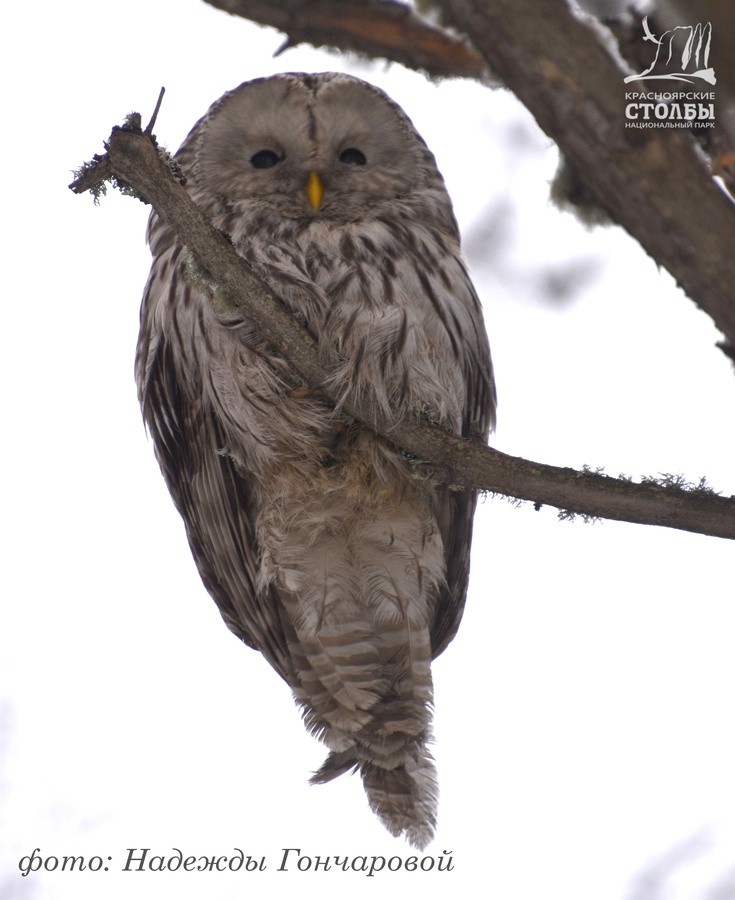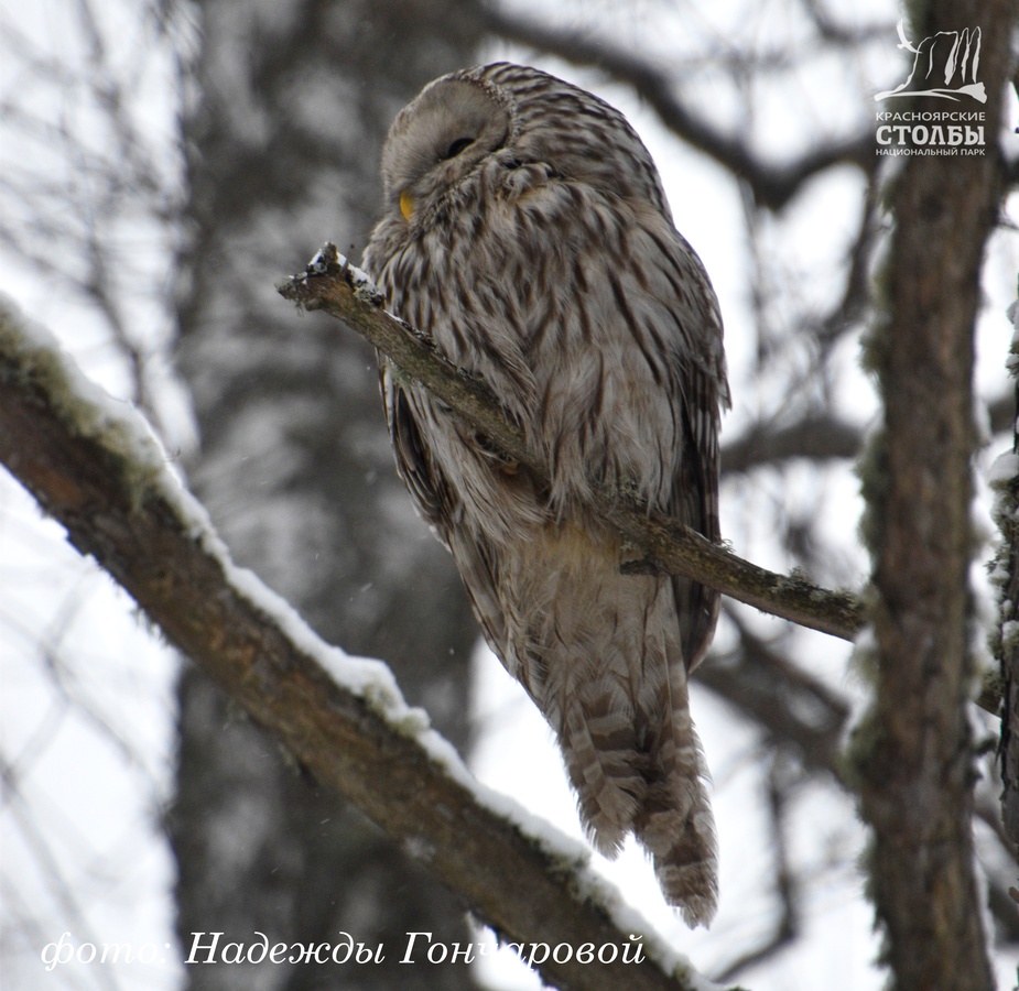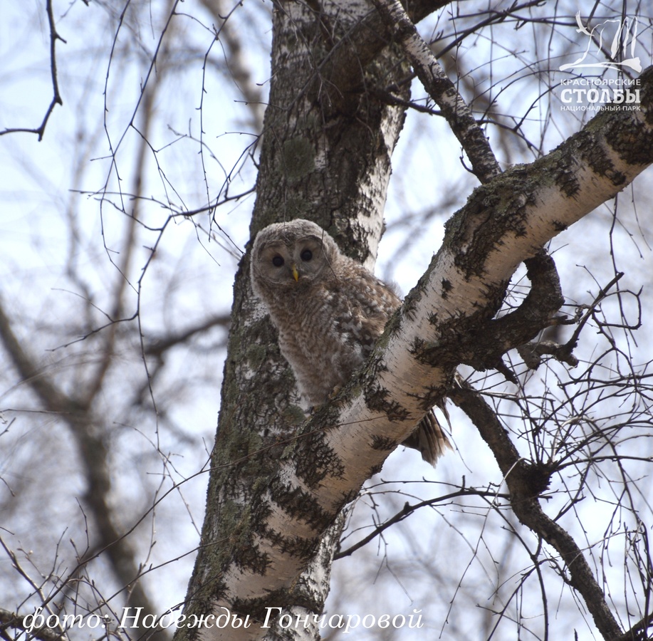 «На «Красноярских Столбах» стоит достаточно крупной птице при виде туристов не улететь в лес, а остаться на виду, тут же набегут страждущие её сфотографировать. Ну, а как иначе?! Хищники достаточно редко попадают нам на глаза. Так что, гуляя в нацпарке, смотрите по сторонам: встреча с совой маловероятна, но никогда не равна нулю. Тем более зимой, когда совушки, в поисках пропитания, прилетают поближе к кормушкам, где охотятся на мелких птиц.